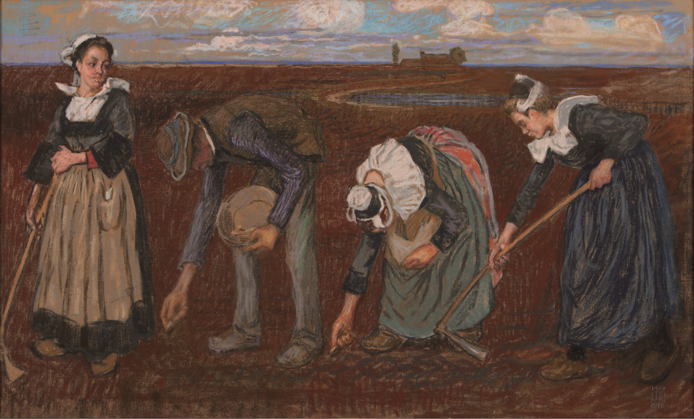 John RECKNAGEL (1870-1940) - Les cultivateurs de Mousterlin, 1910. Pastel sur carton, Ht. 59 x L. 98,5 cm. Ville de Fouesnant-Les Glénan. © Ville de Fouesnant-Les Glénan.